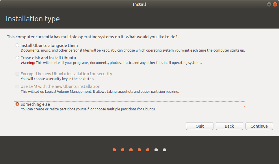 You can install Ubuntu alongside already existing operating systems, and you should if you’re a beginner and already have one on your laptop. Or you can partition it your way by selecting something else.
